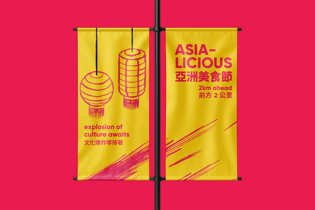 Taking the well established “ASIALICIOUS” name and exploding the brand from the inside out by creating a clean visual look that captures pan-asian culture, while emphasizing the high energy, joy, and inclusivity that defines the festival.